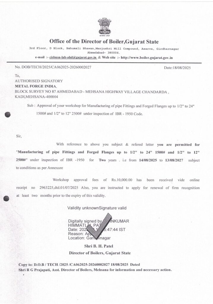 It is as per the compliance of Indian Boiler Regulations (IBR) under the Indian Boilers Act, 1923 that IBR Approved Pipe Fittings have been specifically engineered and designed. These components are essentially fittings that are used in boiler systems, steam lines, and other high-pressure, high-temperature applications. Besides, IBR Approved Pipe Fittings are used in piping systems which require safety and reliability. Typically, the fittings approved by Indian Boiler Regulations or IBR unlike standard ones are put through stringent inspection, testing, and certification. This is to ensure that they can possibly tolerate extreme operating conditions without failure. Usually, they are manufactured using materials such as carbon steel, alloy steel, and stainless steel. A major reason why IBR Approved Pipe Fittings are used in industries like power plants, oil & gas industries, refineries, chemical plants, and petrochemical sectors that involve hostile environments. Finally, we at Metalforgeindia, a leading IBR Approved Fittings Manufacturer in India and IBR Approved Flanges Supplier offer you a wide range of IBR Approved Pipe Fittings that meet the stringent requirements of the Indian Boiler Regulations (IBR). We have exclusively engineered them for you with ‘Precision’ for use in boilers, steam lines, power plants, and high-pressure applications. Our primary objective for making these pipe fittings is to deliver uncompromising safety, reliability, and durability. The important specifications of IBR Approved Pipe Fittings that complies with Indian Boiler Regulations (IBR) are given in table below: The wide range of 100% Premium IBR Approved Pipe Fittings made in compliance with Indian Boiler Regulations (IBR) we at Metalforgeindia, a leading IBR Approved Fittings Manufacturer in India and IBR Certified Pipe Fittings Exporter in India offer you are given in the table below: There are advantages to using IBR Approved Pipe Fittings as per Indian Boiler Regulations or IBR compliance. These include: The different types of IBR Approved Pipe Fittings provided by a top IBR Approved Fittings Manufacturer in India and IBR Approved Flanges Supplier in India are given below: At Metal forge india, a leading IBR Certified Pipe Fittings Exporter in India and IBR Approved Fittings Manufacturer in India offer you a comprehensive ready stock of IBR approved pipe fittings to fulfil the requirements of industries such as power generation, boilers, petrochemicals, oil & gas, and refineries. We also ensure that all our fittings are certified under the Indian Boiler Regulations (IBR) and therefore we guarantee strict compliance with safety and quality standards. Our exclusive list of IBR Approved Pipe Fittings are given below: The materials that we use for our IBR approved pipe fittings include Carbon Steel (CS), Alloy Steel (AS), and Stainless Steel (SS 304, 304L, 316, 316L, 321, 347, etc.). Some of the standards that we are using include ½” NB to 48” NB. Besides, the standards and pressure ratings include IBR Certified, ASME, ANSI, ASTM, BS, DIN and SCH 20 to SCH XXS. Typically, IBR Approved Pipe Fittings prove to be most effective and beneficial in industries where high pressure, steam, and boiler systems are involved. Since they are Indian Boiler Regulations (IBR) approved they are to be used on mandatory basis in systems governed by boiler codes to ensure safety, reliability, and compliance. So, if you are looking to IBR Approved Pipe Fittings at an affordable IBR Approved Pipe Fittings Price in India then, you need to contact us at Metal forge india, best IBR Approved Pipe Fittings Supplier in IndiaIBR Approved Pipe Fittings Manufacturer in India